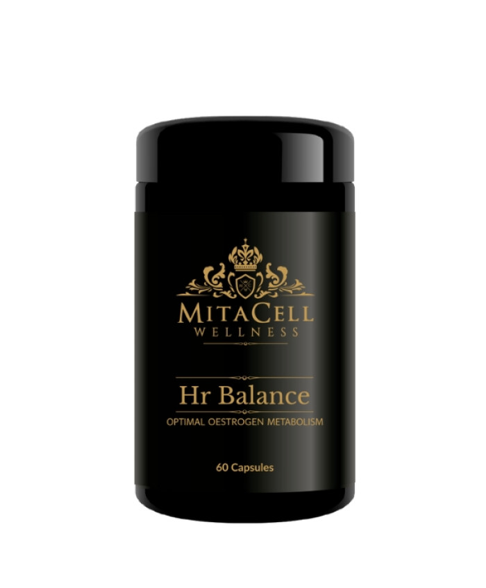HR BALANCE (Capsule Formula)What It IsHR Balance is a targeted hormone support formula designed to promote healthy estrogen metabolism and overall hormonal balance. It combines DIM, Indole-3-Carbinol, sunflower lecithin, and Vitamin E, enhanced with BioPerine for maximum absorption.How It WorksDIM (Diindolylmethane) and Indole-3-Carbinol, derived from cruciferous vegetables, support the breakdown of excess estrogen into healthier metabolites.Vitamin E provides antioxidant protection and supports reproductive health.Sunflower lecithin contributes to cellular and hormone balance.BioPerine improves absorption and bioavailability of all active ingredients.BenefitsSupports healthy estrogen metabolism and hormone balance.Contributes to clearer skin and improved body composition.Provides antioxidant defence for reproductive and cellular health.Helps reduce hormone-related symptoms such as mood swings or discomfort.Who It’s ForAdults seeking hormonal balance, particularly around estrogen regulation.Women experiencing hormone-related symptoms or skin issues.Men interested in balancing estrogen levels alongside testosterone support.When to TakeDaily, preferably with food for best absorption.How to TakeTake 1–2 capsules daily with water and food.Mitacell Quality NoteContains DIM and Indole-3-Carbinol for natural hormone balance.Vegan, allergen-free, and preservative-free.Enhanced with BioPerine for superior absorption.Did You Know?Cruciferous vegetables like broccoli and kale are natural sources of DIM and I3C, but you’d need to eat over a pound daily to match the dose found in HR Balance...